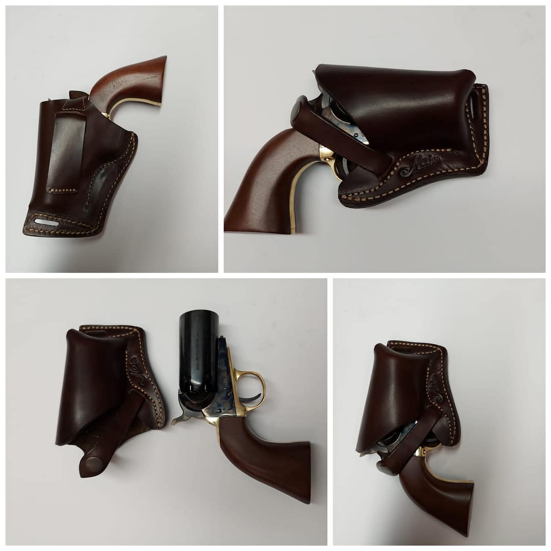 Kabura Colt Navy Yank Pepperbox KA36 pospolicie zwana (pieprzniczką) Kabura wykonana z wysokiej jakości i skóry. Zapięcie na pasek z napą ,kabura może być dopięta do szelek które są na stronie.Zapięcie na pas. Możliwość ustalenia kolorów mailem lub telefonicznie po złożeniu zamówienia.