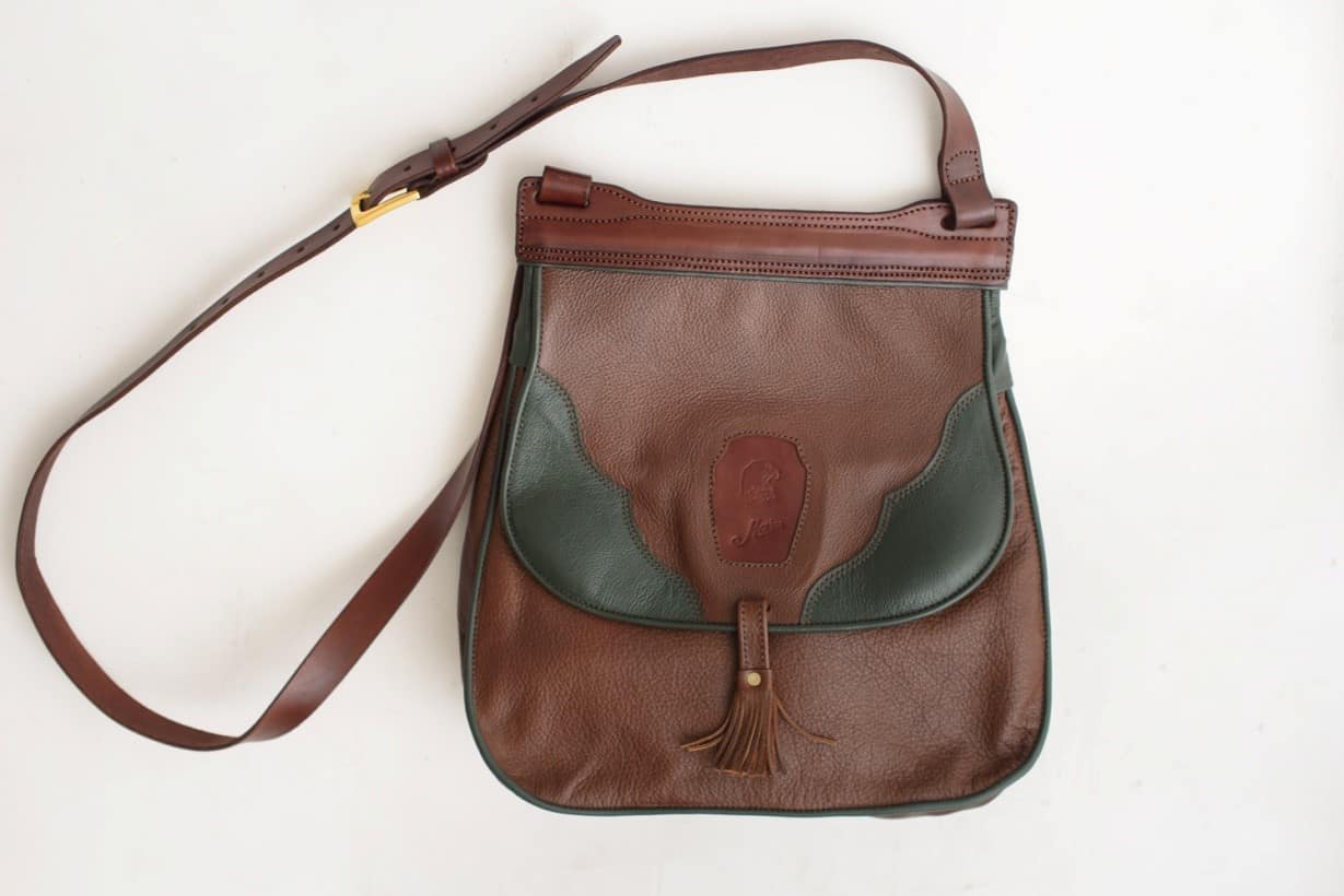 Torba sokolnicza wykonana z wysokiej jakości skór bydlęcych posiada dwie kieszenie oraz jedną mniejszą (np.skłuwak) Wymiary torby wysokość 37cm szerokość 29cm kolor jasny brąz dodatki zieleń butelkowa .Pas z regulacją wykonany z skór bydlęcych produkt polski
